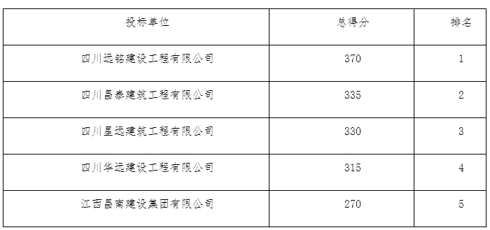 根据2019年3月20日我司对"亚洲世预赛在线直播成都总院二期装饰装修和安装工程施工招标"进行了开标评标,经5位专家评审,现将评标结果公示如下: